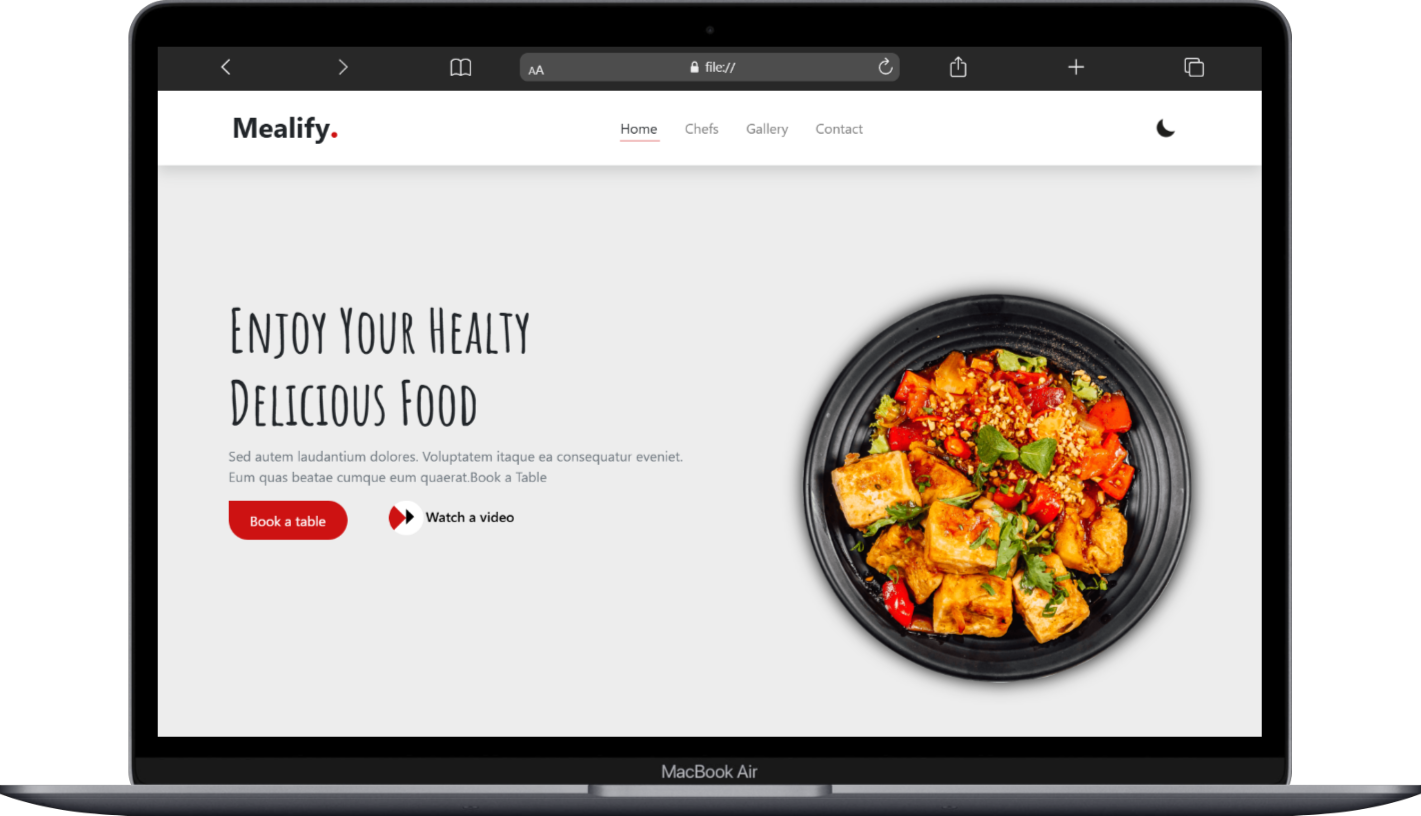 Html BootStarb CSS JavaScript JSONA simple Food Website project built with HTML, CSS, and JavaScript, using an external API to fetch and display meals interactively. The site provides a clean interface for browsing and searching dishes easily.